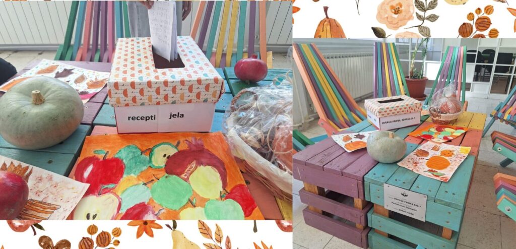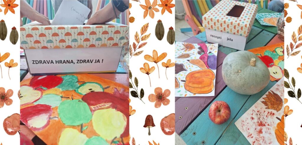Na kraju priredbe, učenici 4.a uključeni u projekt razredne nastave “Zdrava prehrana”, donijeli su kutiju za recepte zdrave hrane u koju će se tijekom listopada prikupljati zdravi recepti u kutku izloženom u atriju škole.