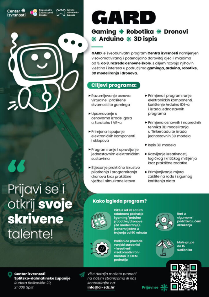 Regionalni znanstveni centar Adriatic otvara vrata svim zainteresiranim učenicima u novim programima kroz sudjelovanje u inovativnim i kreativnim radionicama za djecu i mlade od 5. do 8. razred OŠ.